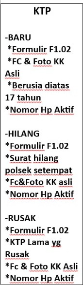 Kependudukan MELAYANI DENGAN SEPENUH HATI SEMUA PELAYANAN KEPENDUDUKAN DI DESA TUNJUNG BERSIFAT GRATIS PERSYARATAN ADMINDUK TERBARU :