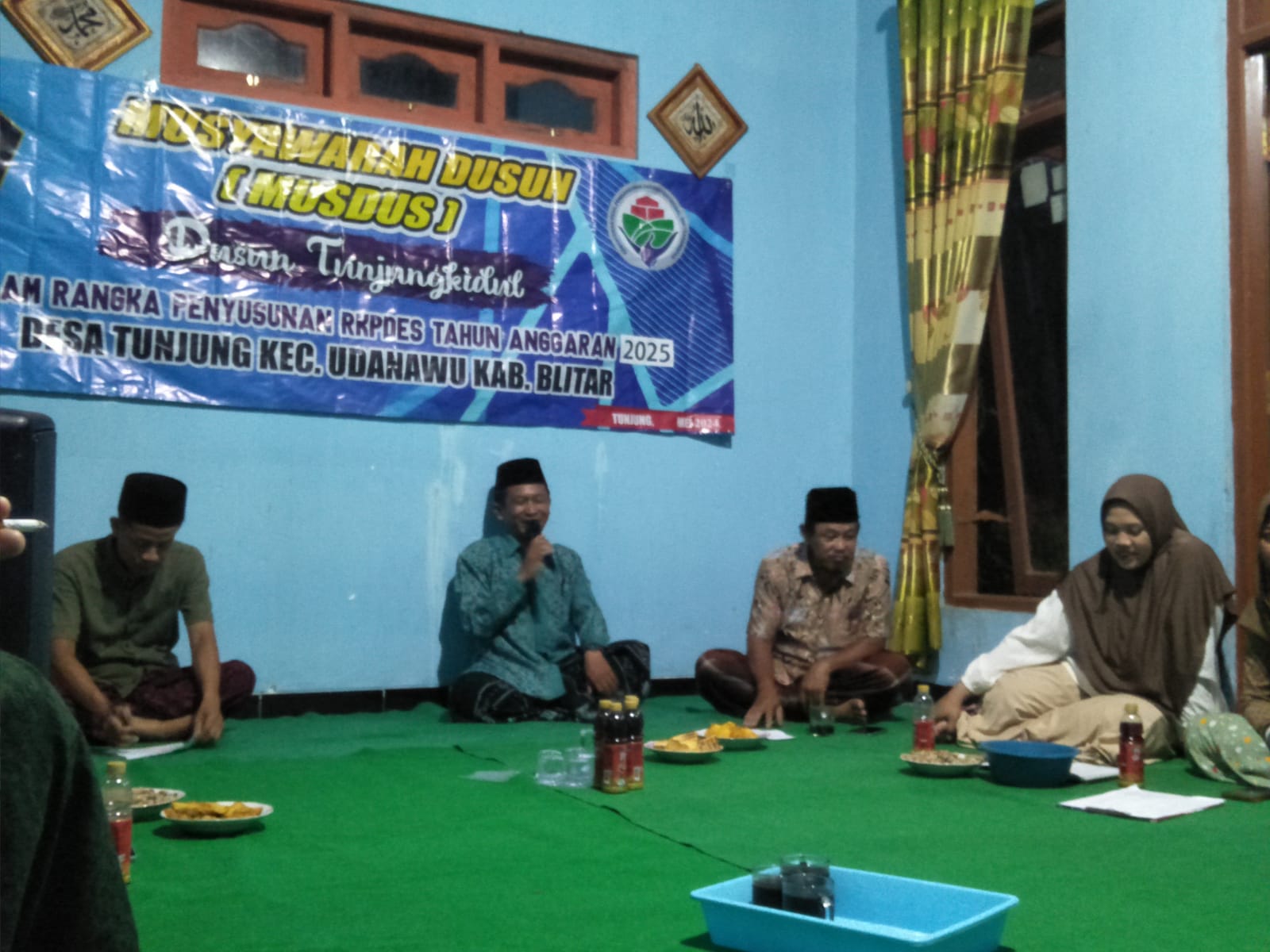 Pelaksanaan musdus atau musyawarah dusun yang berada di tiga dusun. Musyawarah dusun atau Musdus adalah salah satu tahapan dari rangkaian proses perencanaan pembangunan, pembinaan, dan pemberdayaan masyarakat. Musyawarah Dusun bertujuan untuk menggali permasalahan dan potensi di lingkungan dusun, yang mencakup bidang sosial budaya, ekonomi produktif warga dan sarana prasarana fisik lingkungan, dan mencari alternatif solusi atau pemecahan masalahnya. Pada tahapan penyusunan Rencana Pembangunan Jangka Menengah Desa (RPJMDesa) Musdus merupakan tahapan yang wajib untuk dilaksanakan sebelum diadakannya Musyawarah Desa (Musdes). Musdus di Desa Tunjung dihadiri oleh beberapa kali ini menghasilkan beberapa usulan yang nantinya akan dibawa ke tingkan Musdes, usulan yang paling banyak untuk musdus ini masih didominasi dengan usulan terkait pembangunan di wilayah Desa Tunjung.